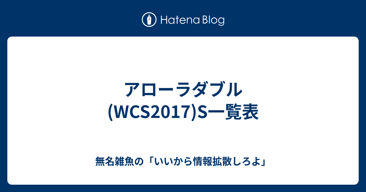 アローラダブル Wcs17 S一覧表 無名雑魚の いいから情報拡散しろよ